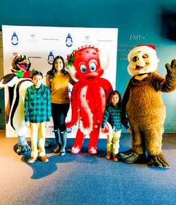 The Aquarium is currently decorated for the holidays and it is just beautiful. We got to take a family picture in front of the Christmas tree and with the Aquarium's cool characters who were in their holiday outfits.