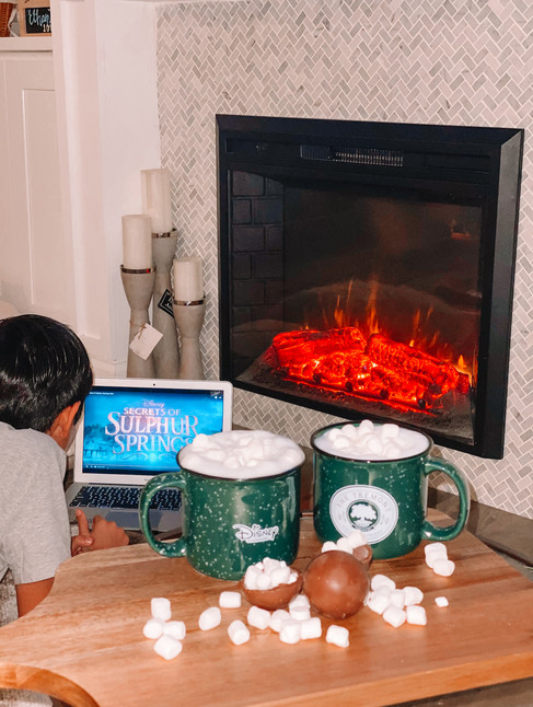 Since this week was all about dropping bombs! Disney Channel Pr and Kristin Cruz surprised us with our very own bombs, delicious Hot Chocolate bombs to be exact. This was the perfect treat because it's been chilly this week, which was perfect for us to enjoy episode 10 of Secrets of Sulphur Spring by the fireplace.